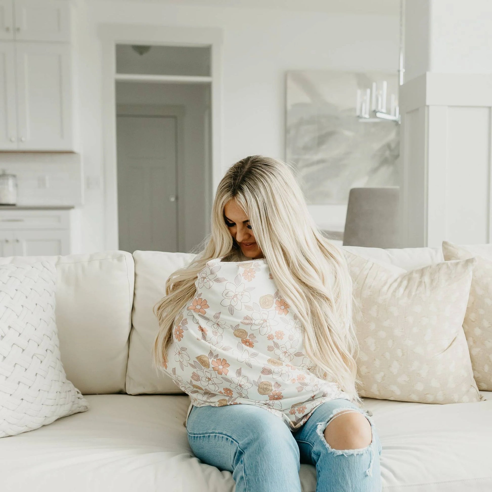 - Stretchy fabric fits most all car seats, shopping carts, high chairs and nursing mothers. It can also be a trendy infinity scarf!