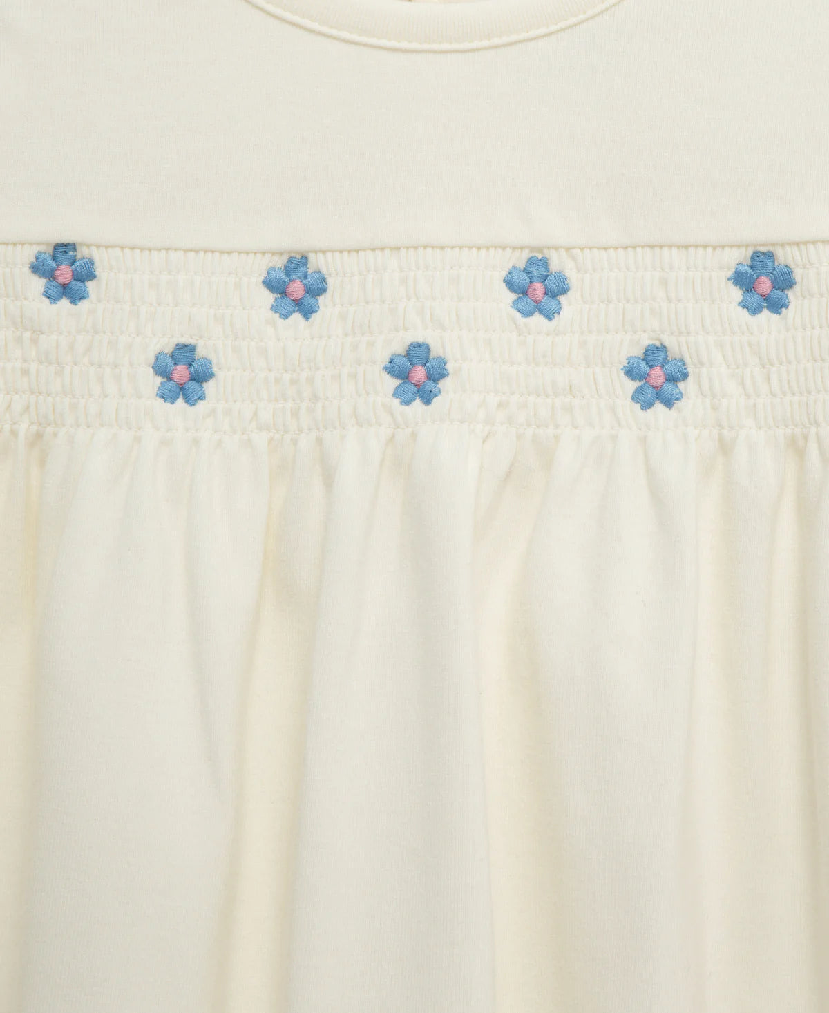 She will be ready for any adventure in our three-piece elevated play set. The set includes a ribbed pant, atop with floral embellishments, and a floral print top with a Peter Pan collar.