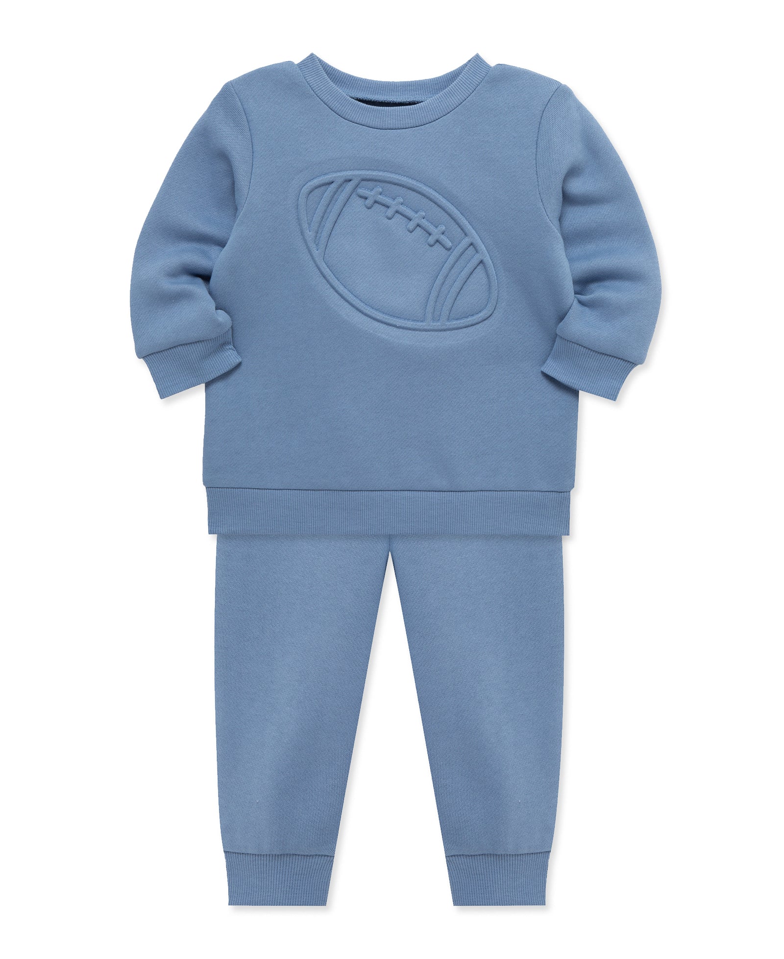 He is sure to love this sweatshirt set that is a closet staple. The set includes a blue, football detailed sweatshirt and matching sweatpants.