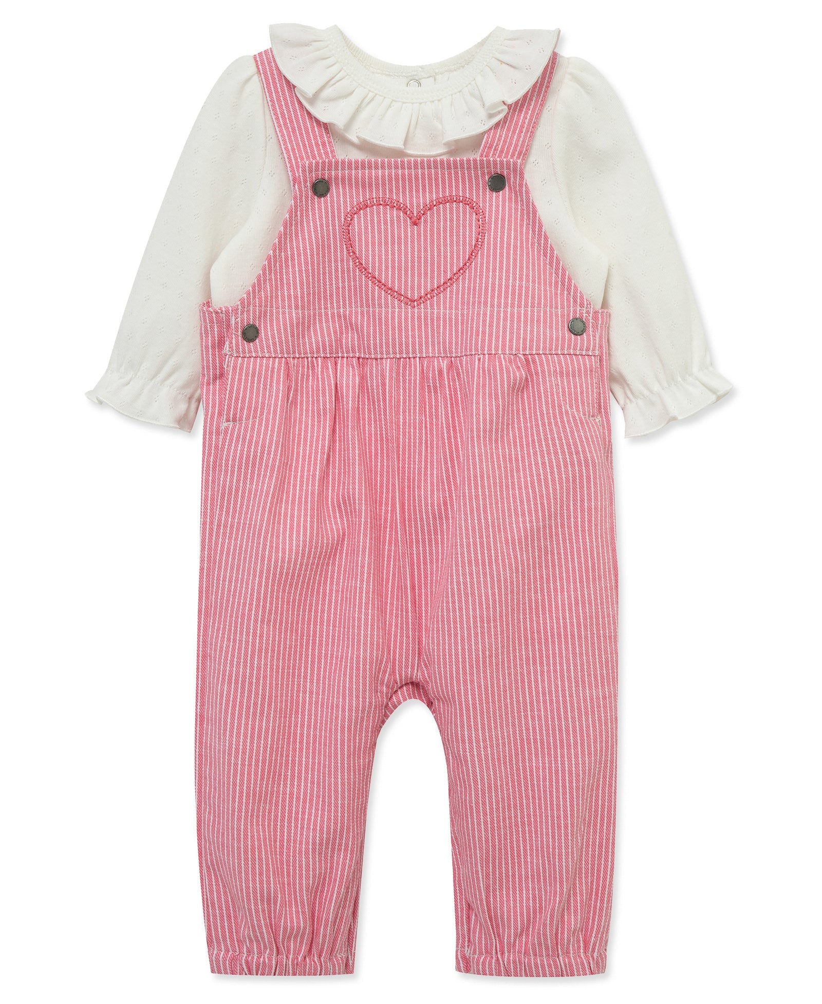 - The sweetest heart details this baby girls' overall with a perfectly paired long sleeve ruffle top. A super cute and easy outfit.