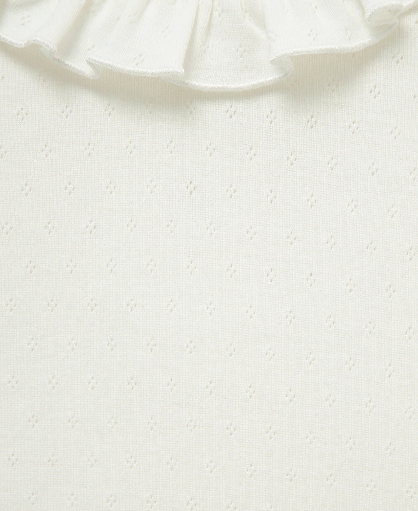 - 97% Cotton, 3% Spandex Woven Twill Overall, 100% Cotton Diamon Pointelle Knit Top.