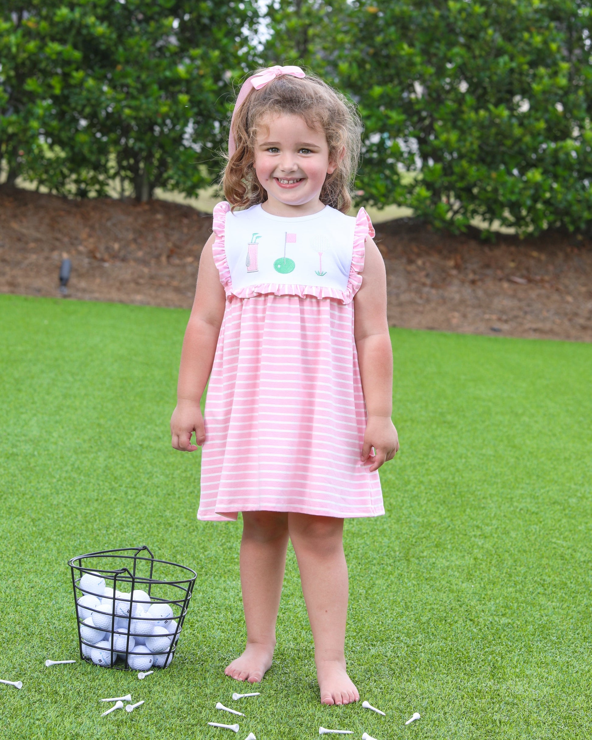 A trotter street classic play dress embellished with a tee time ready appliqué design