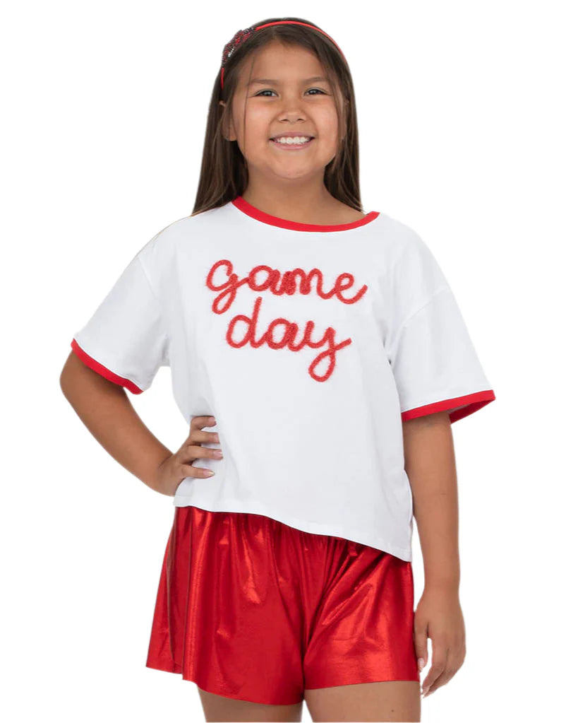 Tinsel Game Day Ringer Boxy T- Red